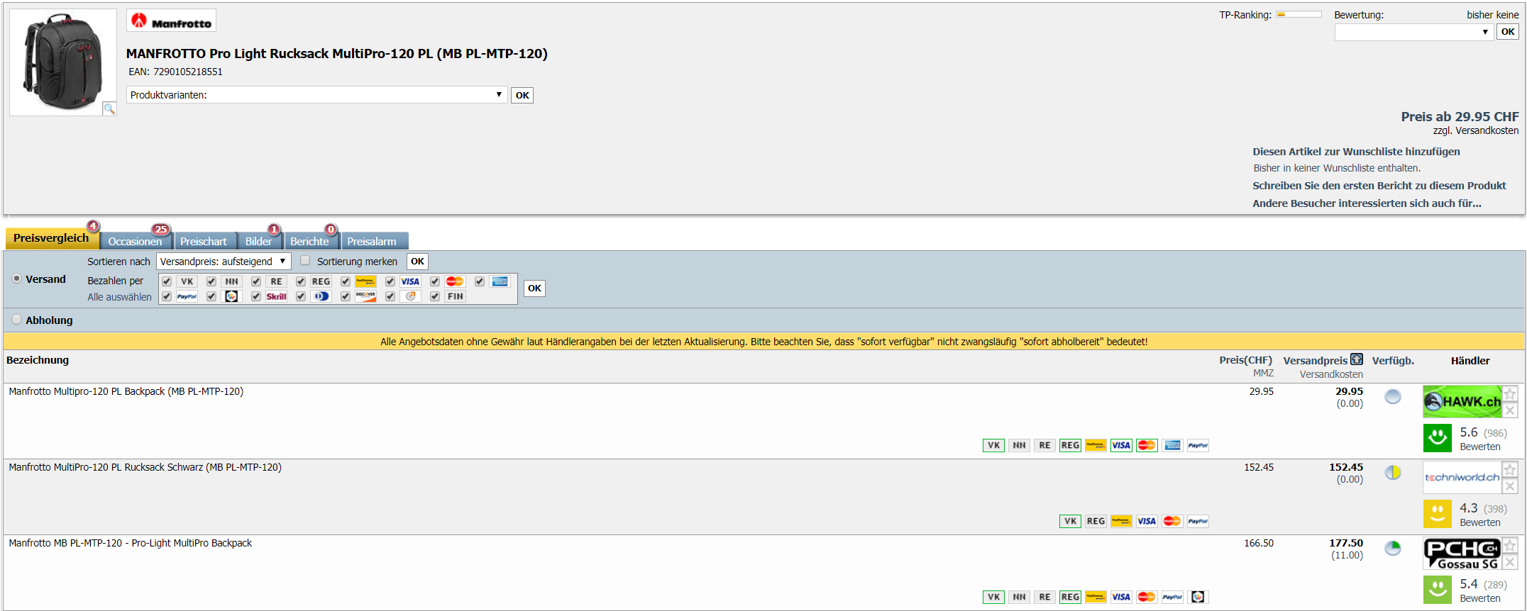 Manfrotto Multipro-120 PL für CHF 29.95.- nächst höherer Preis CHF 152.45.- bei techniworld.ch