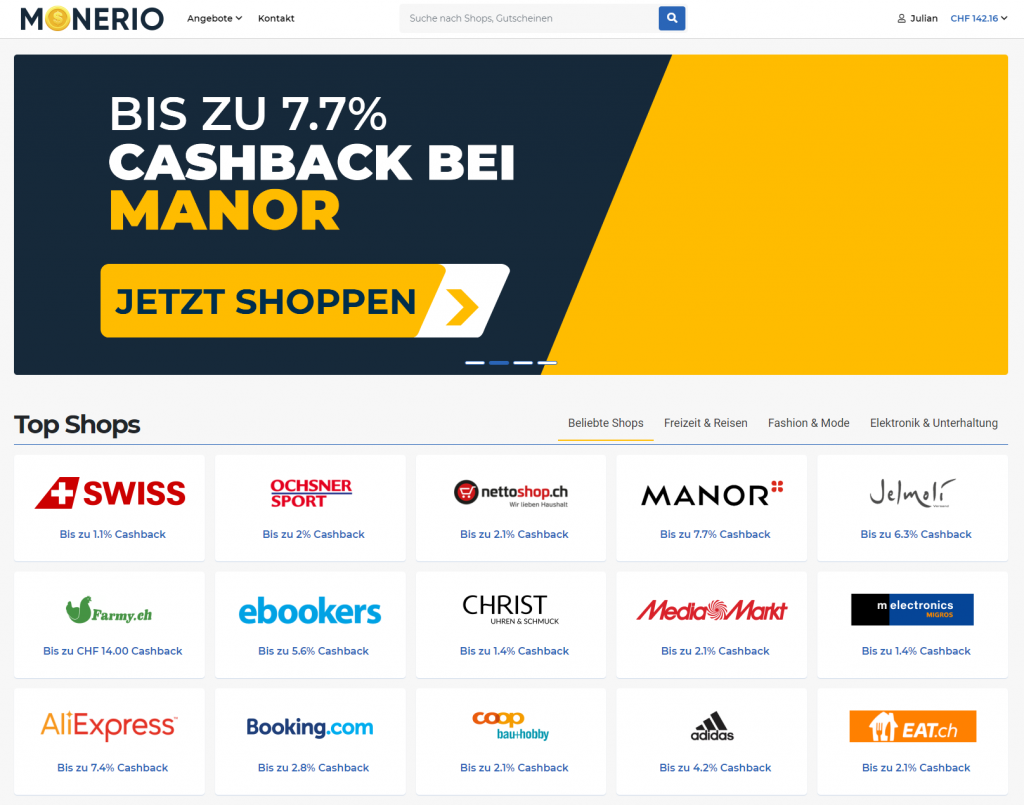 Viele von euch kennen die Cashback-Plattform Monerio bereits aus den Kommentaren oder aus diesem Deal. Beim Einkauf in über 600 Onlineshops erhältst du bei Monerio zusätzlich einen Cashback. Der fleissigste User hat in den letzten anderthalb Monaten bereits sagenhafte CHF 1018.00 Cashback gesammelt.