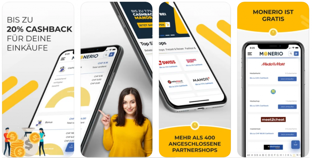 - Wer sonst hat 463 Partner-Shops und bietet den höchsten Cashback an? Unser Team hat die Cashback-Raten von allen Schweizer Cashback-Plattformen mit den Raten von Monerio verglichen. Bis auf ganz wenige Ausnahmen bietet Monerio den höchsten Cashback an. An den Ausnahmen (aktuell weniger als 15 der 463 Partner) arbeiten wir 👨💻