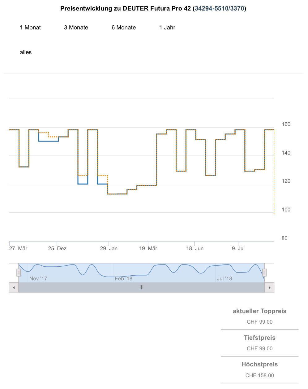 Günstiger als für 112.95 CHF gab es den Rucksack noch nie, zweitbester Preis aktuell bei 171.- CHF.