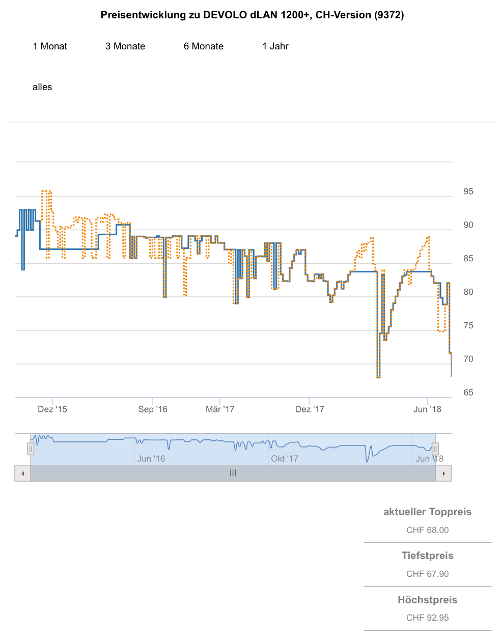 Im März gab es den Adapter gemäss toppreise einmal für einen Tag 10 Rappen günstiger für 67.90 CHF, nun sind wir wieder einmal auf diesem attraktivdn Preisniveau. Der zweitbeste Preis liegt momentan bei 83.- CHF.