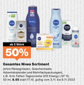 50% auf Nivea bei Migros klingt gut, zudem Coop inzwischen einige Nivea Preise mal eben um 25% erhöht hat.