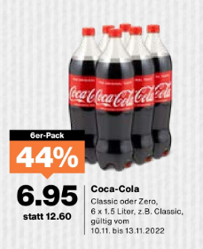 Cola gibts wenn ich mich nicht irre am Wochenende bei Coop für 6.30 CHF im Wochenendknaller