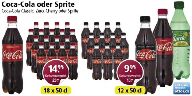 Die beliebten Süssgetränke Coca Cola und Red Bull sind zwar nur zum normalen Aktionspreis verfügbar, allerdings könnte man auch hier mit einem Einkauf ab 60 Franken nochmal 10 Franken einsparen. Bei Coca Cola habt ihr zudem die Wahl der eher selten reduzierten Sorte „Cherry“.