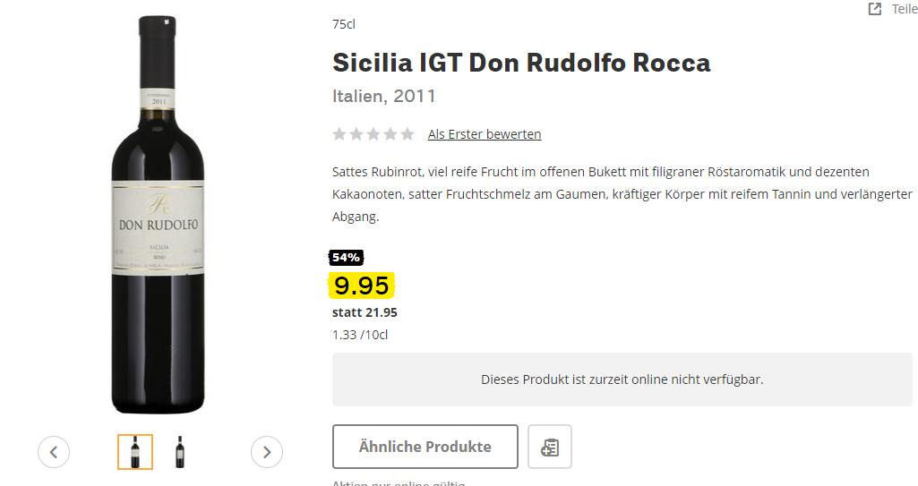 Sicilia IGT Don Rudolfo Rocca Wein für CHF 9.95 statt 21.95