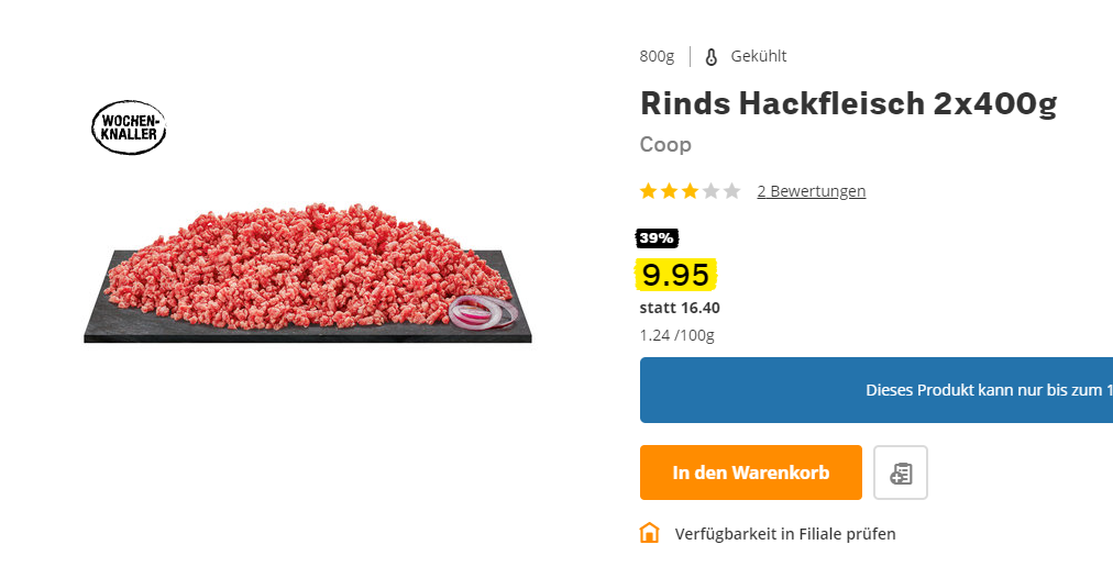 Rinds Hackfleisch 2 x 400g für CHF 9.95 statt 16.40