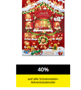 40% auf alle Schokoladen-Adventskalender z.B. Lindt Teddy Adventskalender für CHF 5.95 statt 9.95