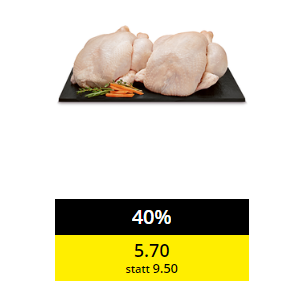 Coop Poulet, Schweiz, in Selbstbedienung, per kg CHF 5.70 statt 9.50