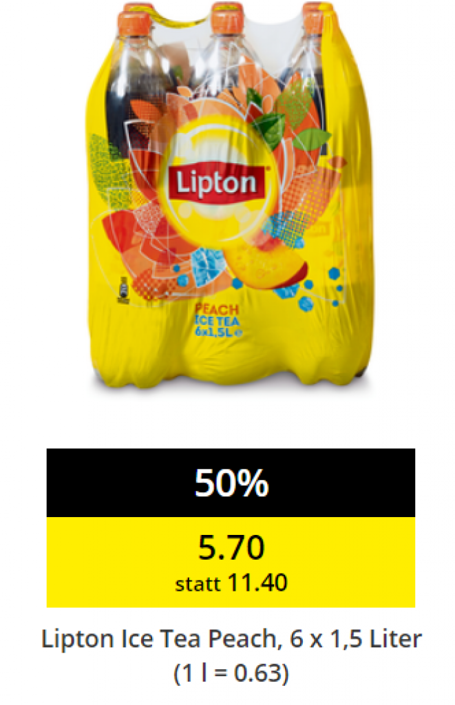 Lipton Ice Tea Peach 6 x 1.5 Liter für CHF 5.70 statt CHF 11.70.