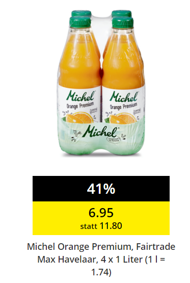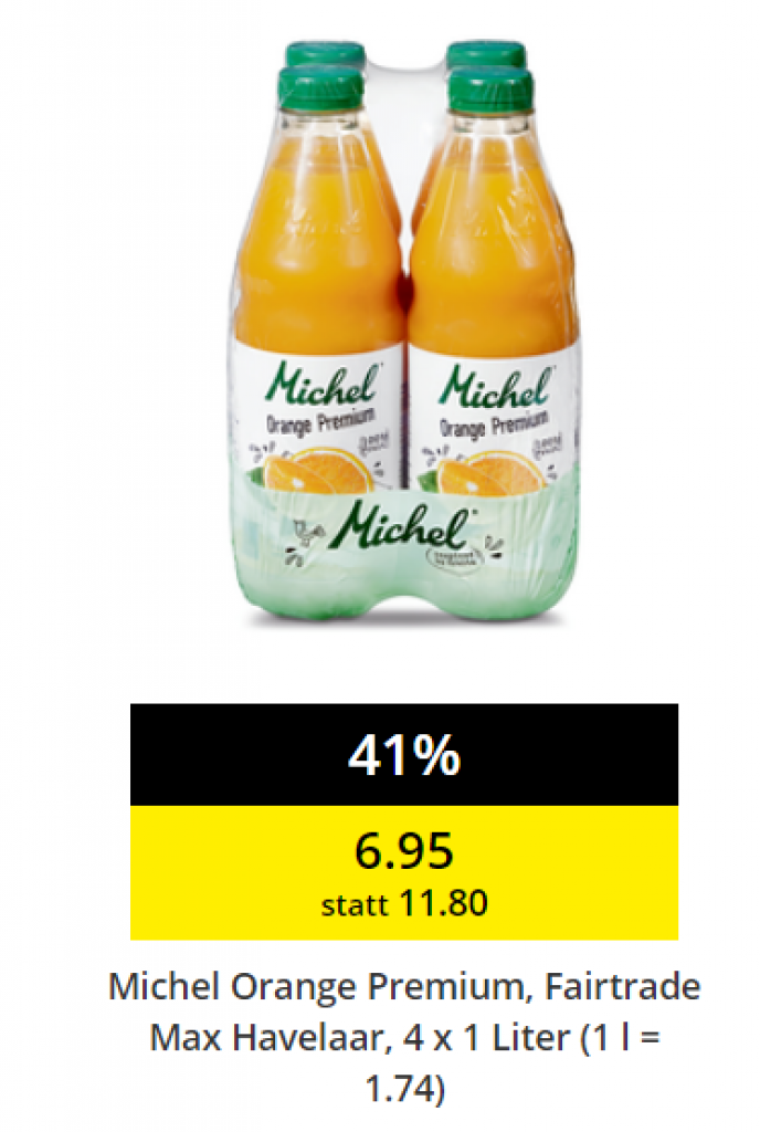 Michel Orange Premium 4 x 1 Liter für CHF 6.95 statt CHF 11.80.
