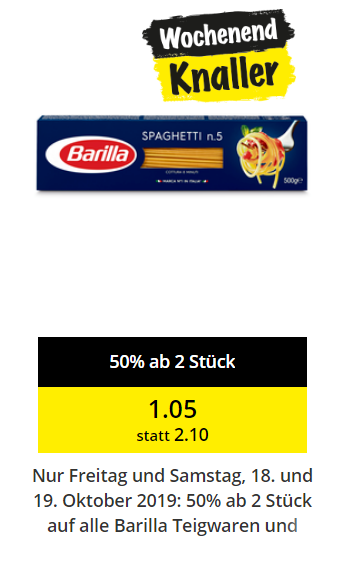 Barilla Spaghetti für CHF 1.05 statt CHF 2.10.