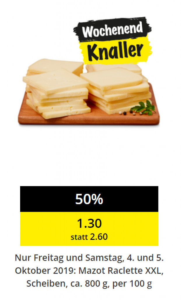 Der Mazot Raclette XXL Käse für CHF 1.30 anstatt CHF 2.60.
