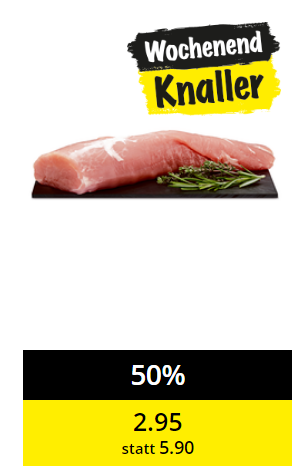 Coop Schweinsfilet ca 480g pro 100g bezahlt man CHF 2.95 statt CHF 5.90.