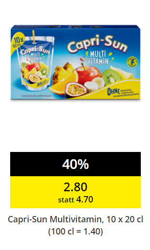 Capri-Sun Multivitamin, 10 x 20 cl für CHF 2.80 statt CHF 4.70.