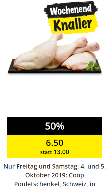 Die Coop Pouletschenkel für CHF 6.50 anstatt CHF 13.00.