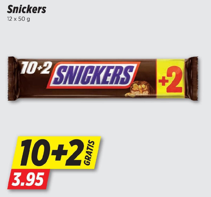 Auch das 12er-Pack Snickers gibt’s zum gleichen Preis von 3.95 Franken wie letzte Woche bei Otto’s.