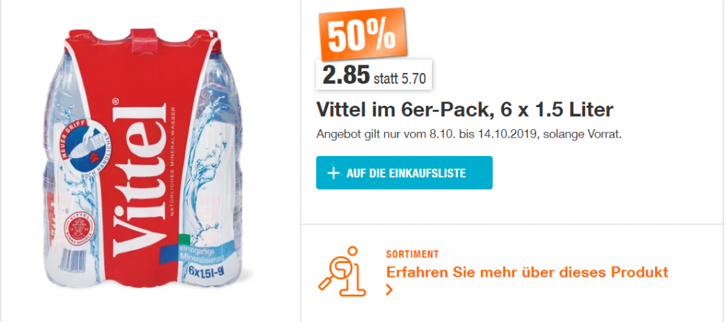 Vittel 6 x 1.5 Liter für CHF 2.85 anstatt CHF 5.70.