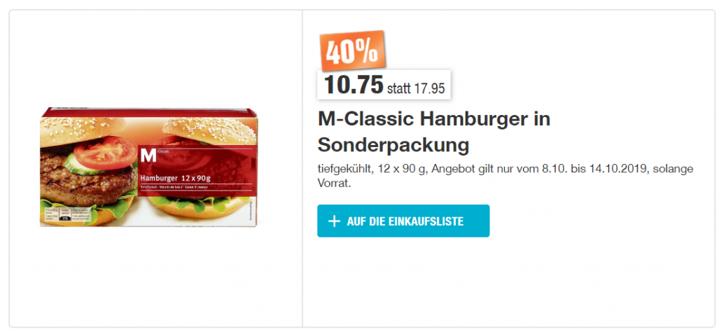 M-Classic Hamburger in der Spezial-Verpackung für CHF 10.75 statt CHF 17.95.