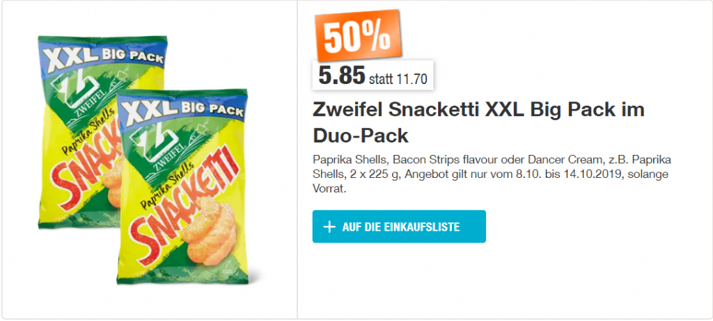 Snacketti XXL für CHF 5.85 statt CHF 11.70 ab 2 Stück.