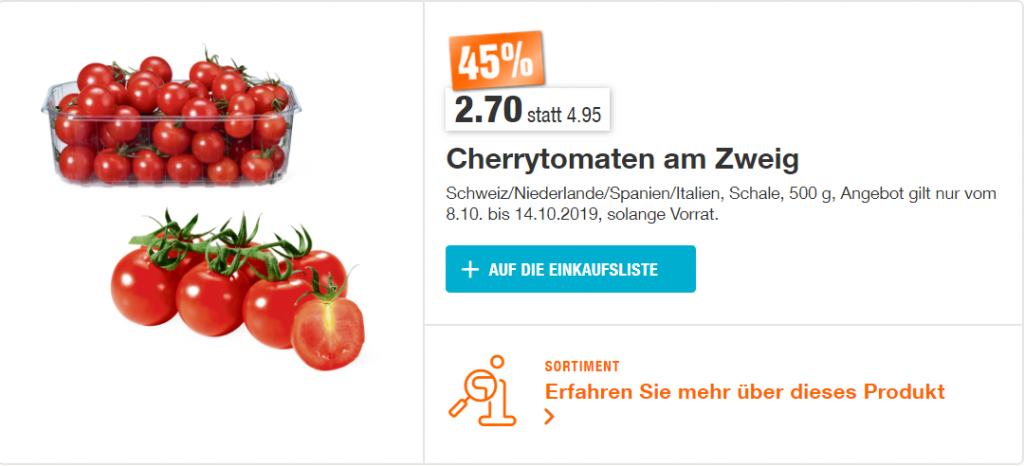 Cherry Tomaten für CHF 2.70 statt CHF 4.95.