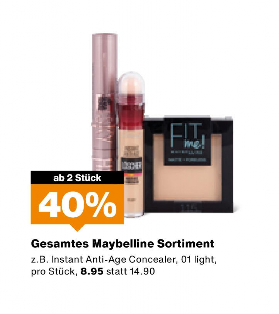 Ebenfalls in Aktion ist das gesamte Maybelline-Sortiment. Wenn ihr mind. 2 Artikel einkauft, spart ihr 40%!
