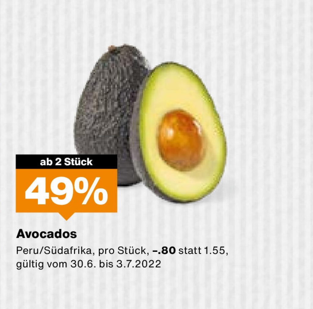 Als Wochenendknaller gibt’s vom 30.06. bis zum Sonntag Avocados für 80 Rappen pro Stück, wenn ihr mind. 2 einkauft. Und auch die grosse Auswahl an Sirup wird mit 30% heruntergesetzt. Die beste Gelegenheit also, den Vorrat aufzufüllen 😉