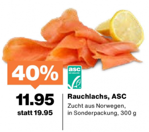 Oder ihr findet die 300g Packungen Rauchlachs für 11.95 Franken.
