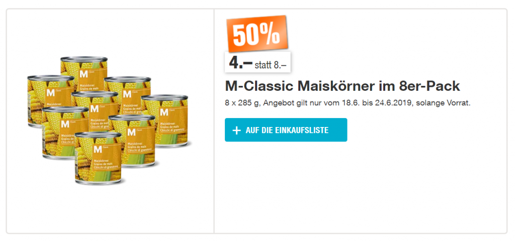 Gibt’s ebenfalls in anderen Aktionen günstiger..der Bequemlickeit halber kann man aber auch in der Migros zuschlagen