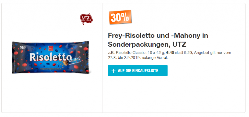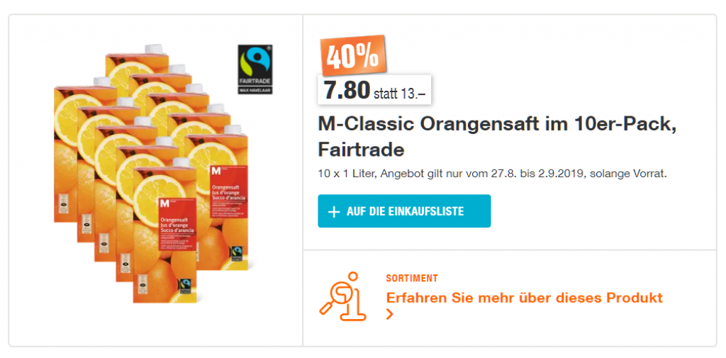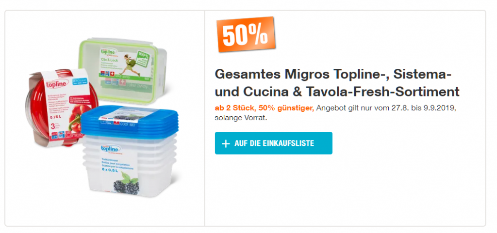 Bei der Migros gibt’s ab gestern wieder einige interessante Aktionen. Die meisten davon gelten auch bei LeShop - denkt an die neuen Liefergebühren, das könnte durchaus interessant sein.