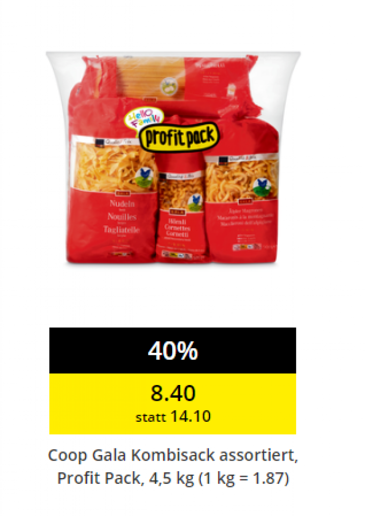 Assortierte Teigwaren 4.5kg für CHF 8.40