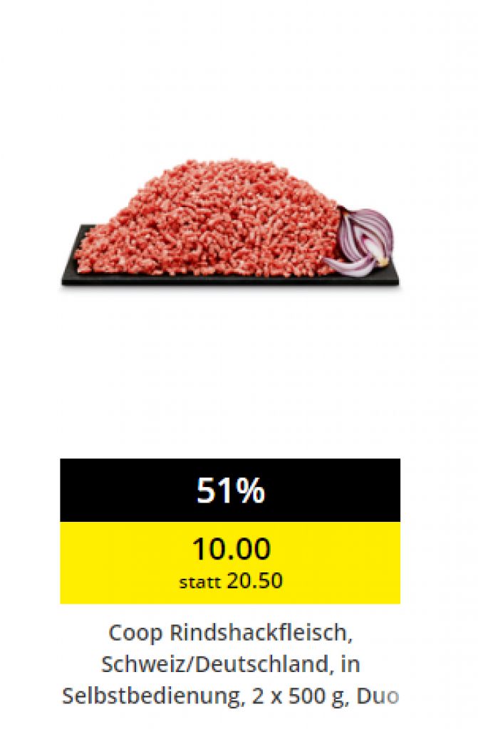 Coop Rindshackfleisch, Schweiz/Deutschland 10 CHF statt 20.50 CHF