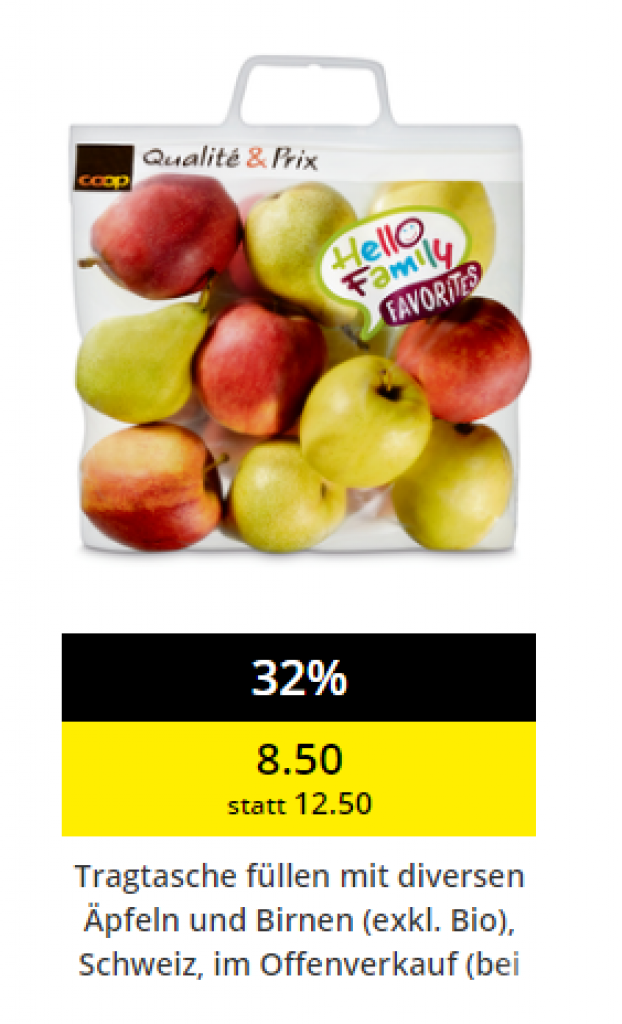 Tragtasche füllen mit div. Äpfeln und Birnen für CHF 8.50