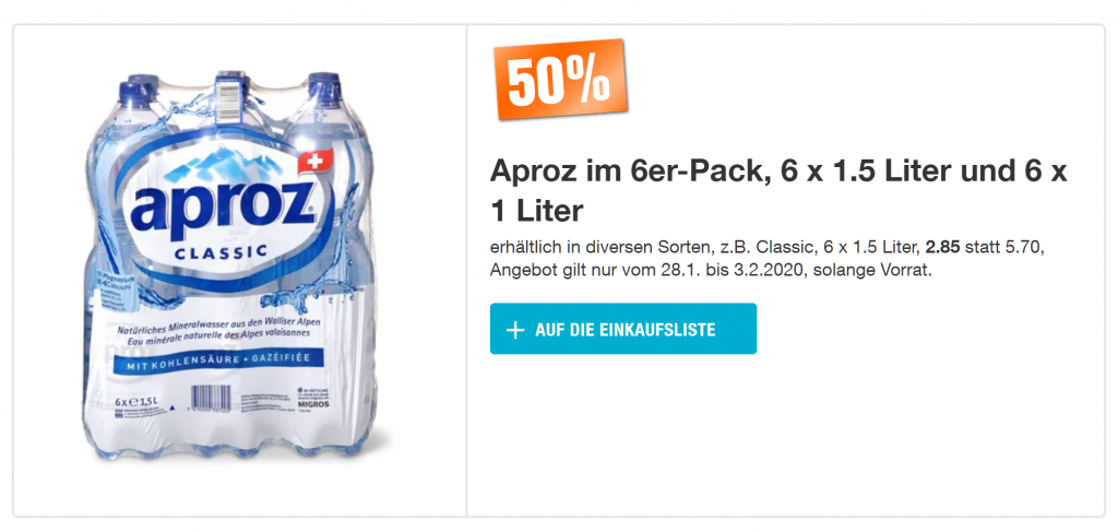 Bei der Migros gibt’s diese Woche wieder einmal interessante Aktionen. Gültig bis sicher Samstag, an vielen Orten auch bis Montag. Wie immer: Je nach Genossenschaft unterscheiden sich die Aktionen etwas.