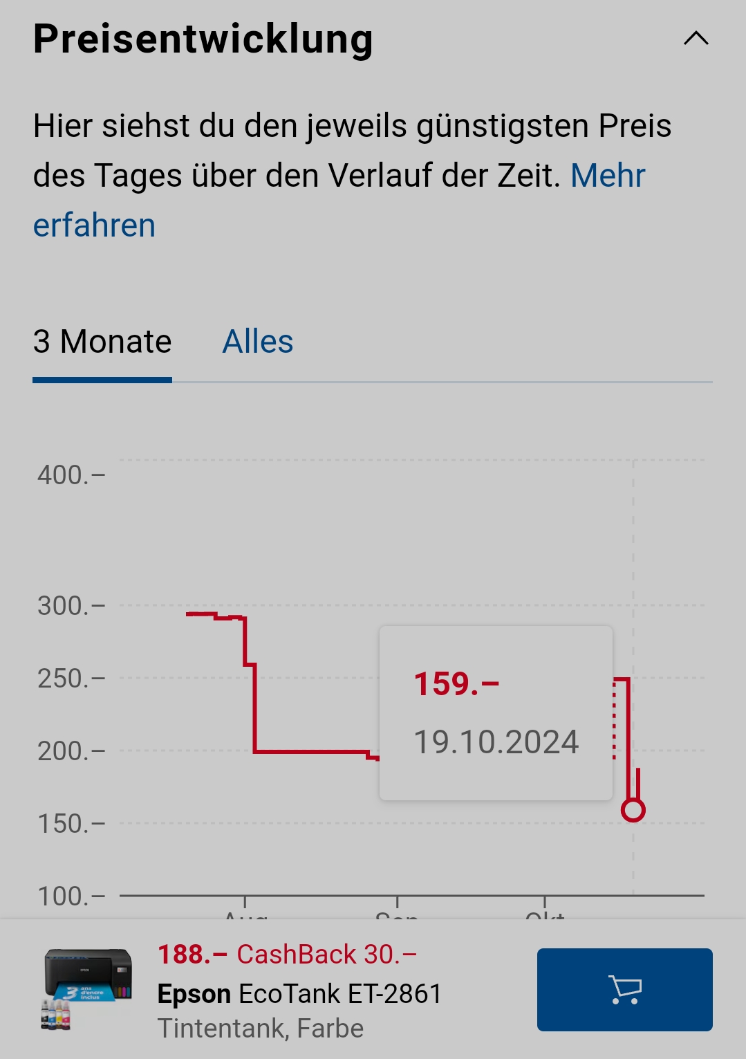 Nein, der Preis war ohne Cashback 159.-, mit Cashback 129.-