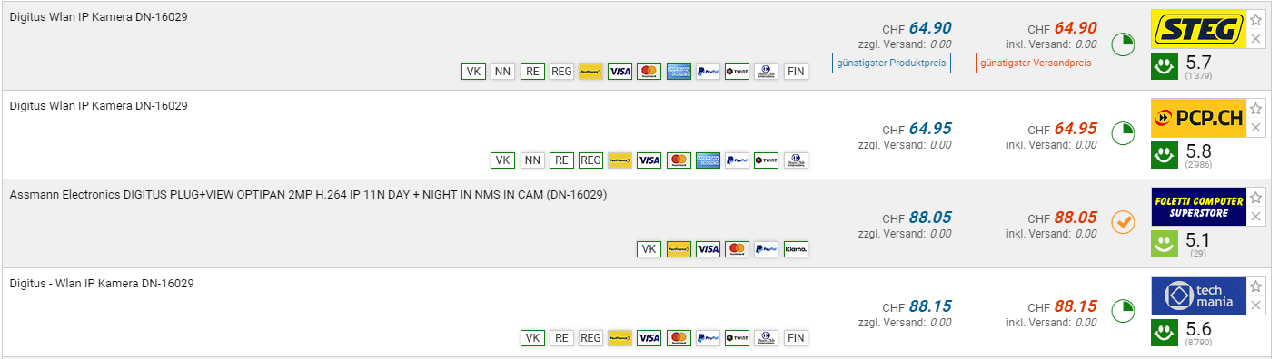 Bei Steg hat die IP-Cam eine 1 Sterne Bewertung. Der Nutzer hat sie aber (glaube ich zumindest) falsch eingesetzt.
