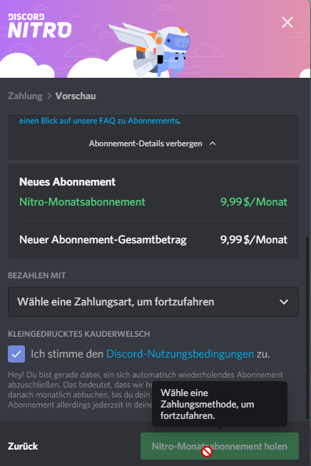 Aber ohne Zahlungsmethode geht es nicht!