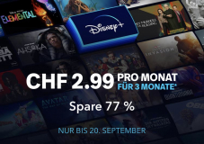 *Angebot endet am 20.09.23. Gilt nur für neue und teilnahmeberechtigte zurückkehrende Abonnenten. Abonnenten müssen mindestens 18 Jahre alt sein. Rabatt errechnet sich aus einem Vergleich des aktuellen Monatspreises von CHF 12.90 zum Angebotspreis von CHF 2.99/Monat. Nach 3 Monaten wird Disney+ so lange automatisch auf monatlicher Basis zum Premium-Preis von CHF 17.90 verlängert, bis du kündigst. Bitte Angebotsbedingungen beachten.