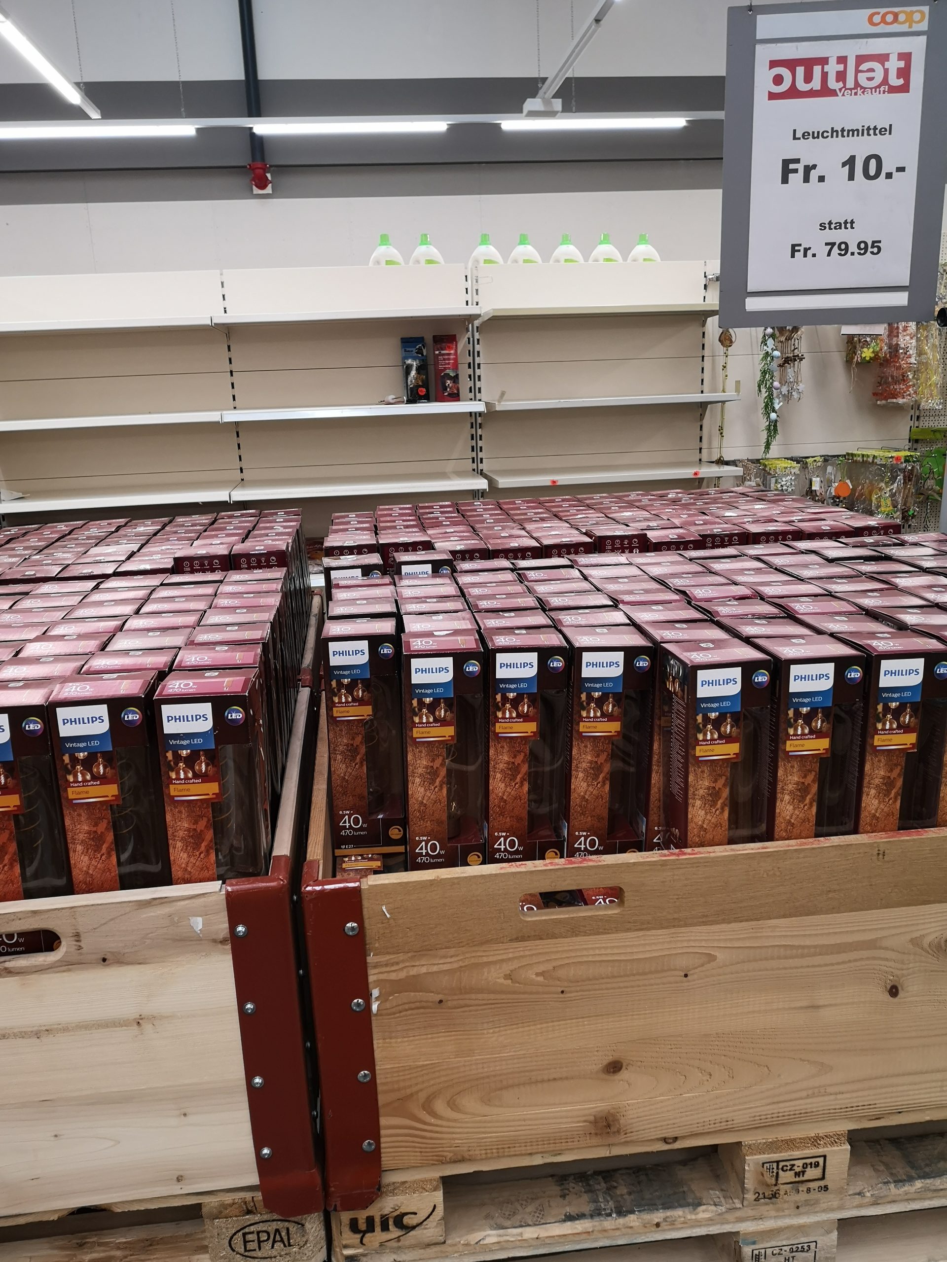 Im coop outlet Schönbühl gibt es aktuell Div philips vintage LED Leuchtmittel 1 CHF bis 10 CHF. Petzel TIKKINA für 5 CHF kostet normal rund 25 chf p