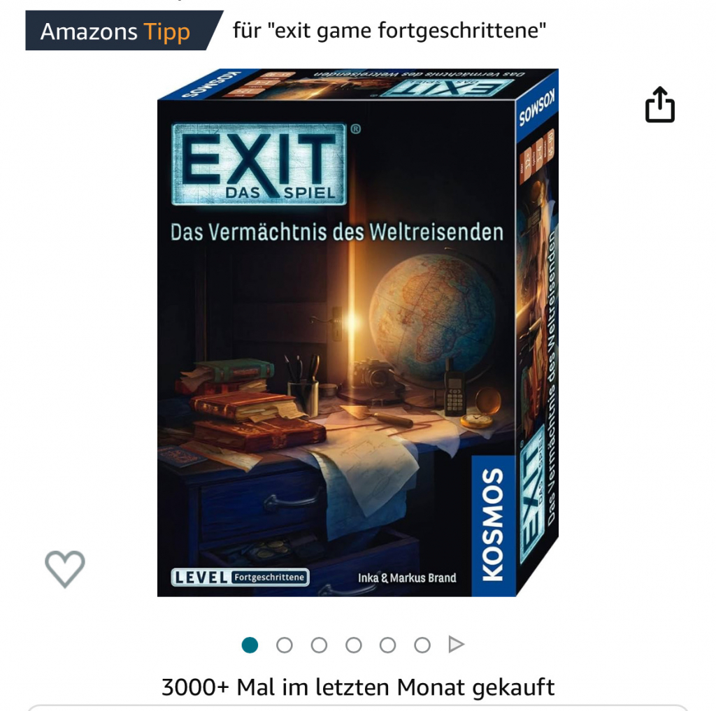 Aktuell gibt es zahlreiche EXIT Spiele für 10-11 Franken bei Amazon Deutschland. In der CH häufig zwischen 17-20 Franken.
