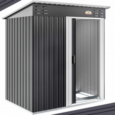 In diesem wetterbeständigen Geräteschuppen verstauen Sie Ihre Gartenutensilien und -geräte sicher und trocken. Das Gartenhaus bietet auf kleiner Fläche viel Platz für Werkzeuge, Rasenmäher, Autoreifen und andere Gegenstände.