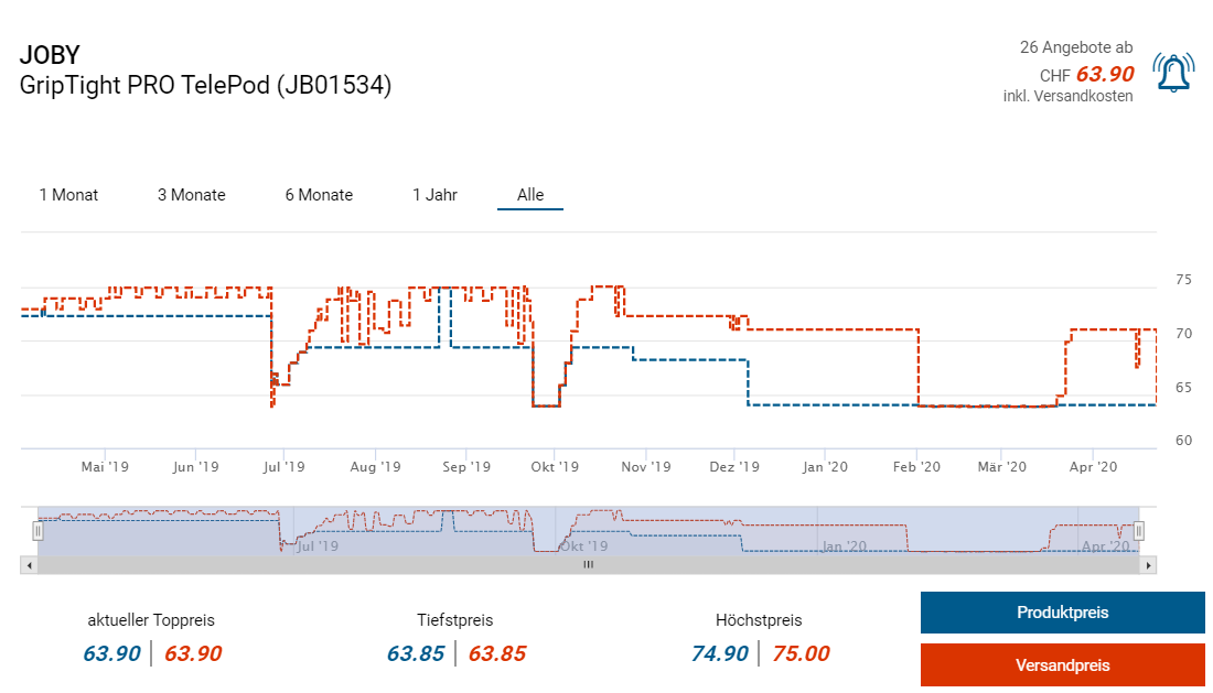 So gibts z.B. den Joby GripTight Pro Telepod für CHF 53.90 anstatt CHF 63.90 oder den GorillaPod Mobile Rig für CHF 59.90 anstatt CHF 69.90.