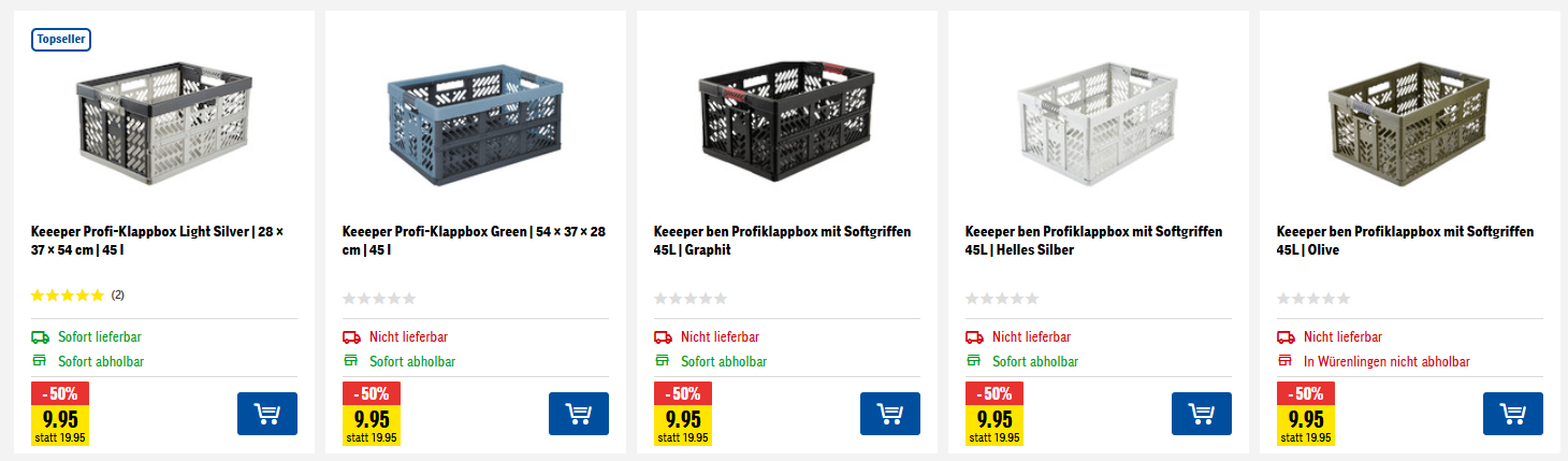 Bei Jumbo sind aktuell wieder einige Profiklappboxen der Marke keeeper in Aktion für 9.95 Franken erhältlich! Falls ihr mehr als 5 Stück bestellt, könnt ihr euch durch die Newsletter-Anmeldung bei Jumbo zusätzlich 10 Franken Rabatt sichern. Laut Google Shopping wäre Mömax mit 14.95 Franken der zweitgünstigste Anbieter.