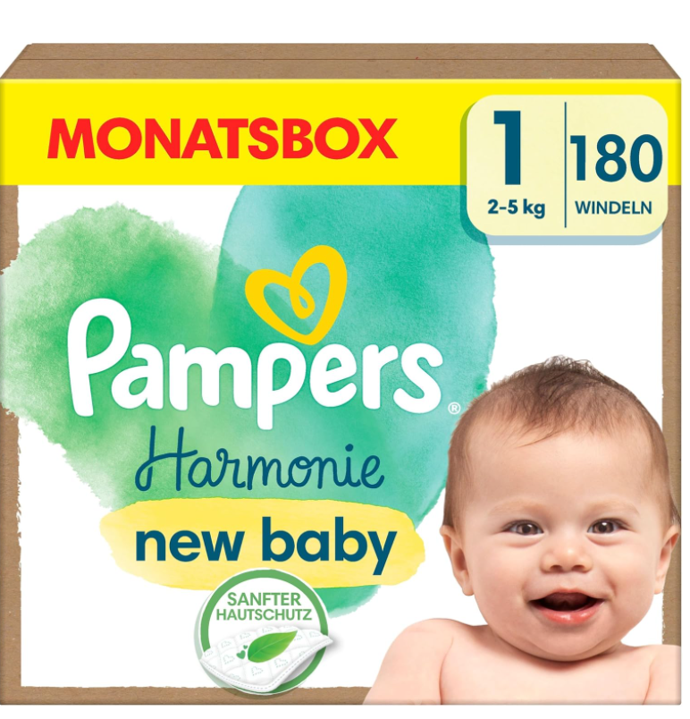 Diverse Pampers Monatsboxen bei Amazon in aktion z.B. Pampers Harmonie Baby Windeln Grösse 1 180 Windeln