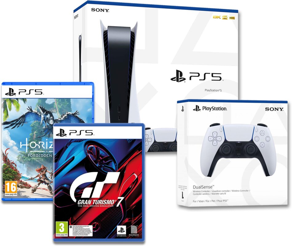 Ihr habt dabei die Wahl zwischen 2 von 3 Games: The Last of Us Part 1, Horizon Forbidden West sowie Gran Turismo 7. Mit dabei ist zudem ein 2. Controller.