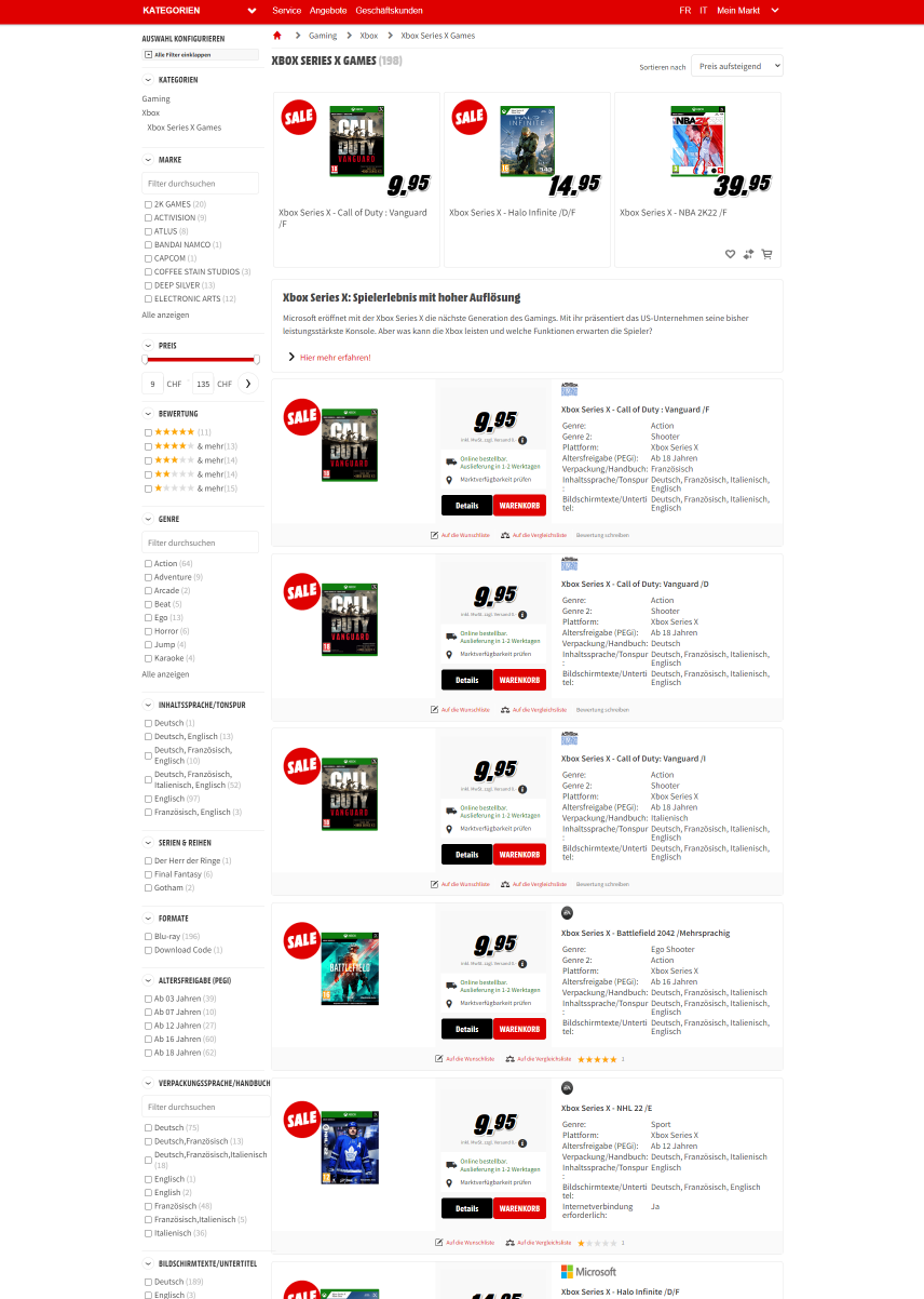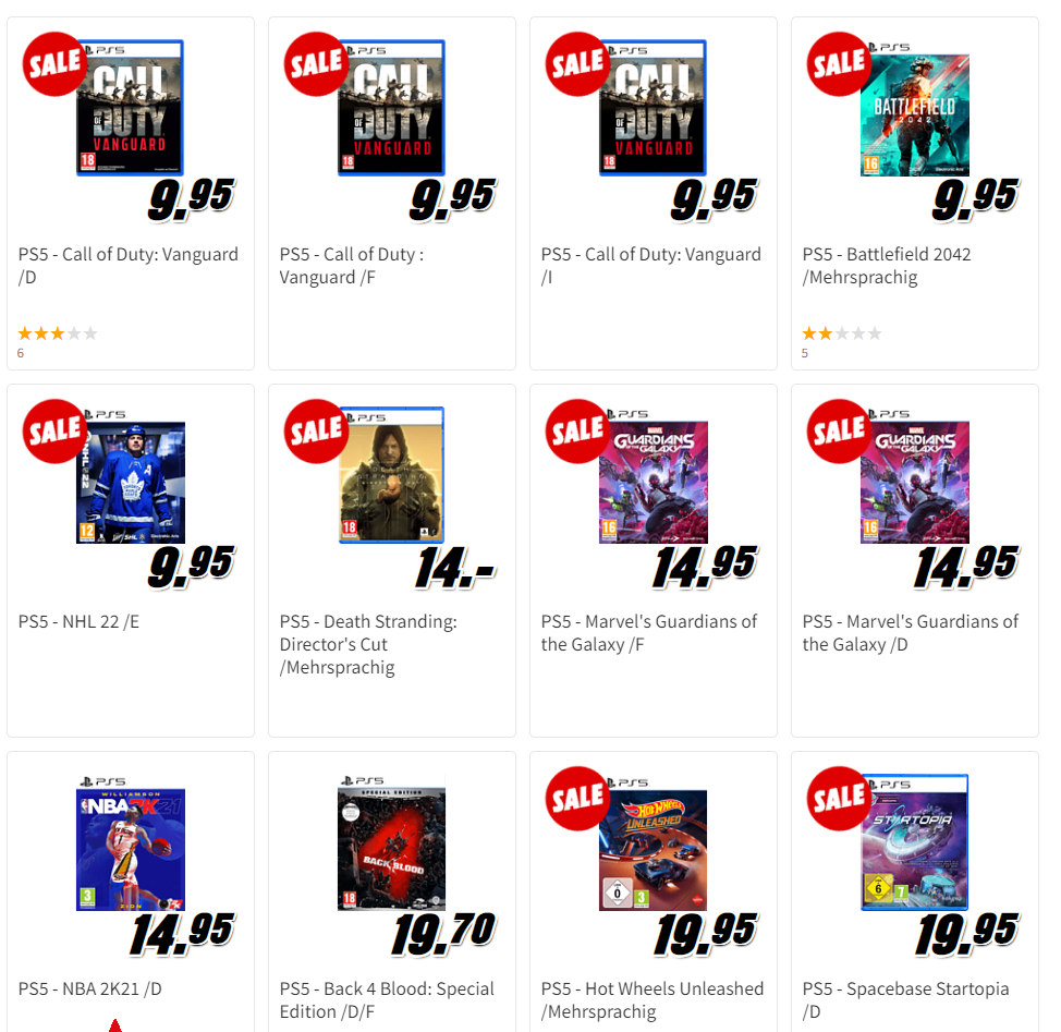 Bei MediaMarkt findet ihr derzeit eine grosse Auswahl an Games für Playstation und Xbox zu tiefen Preisen. Danke an tazz für den Hinweis!