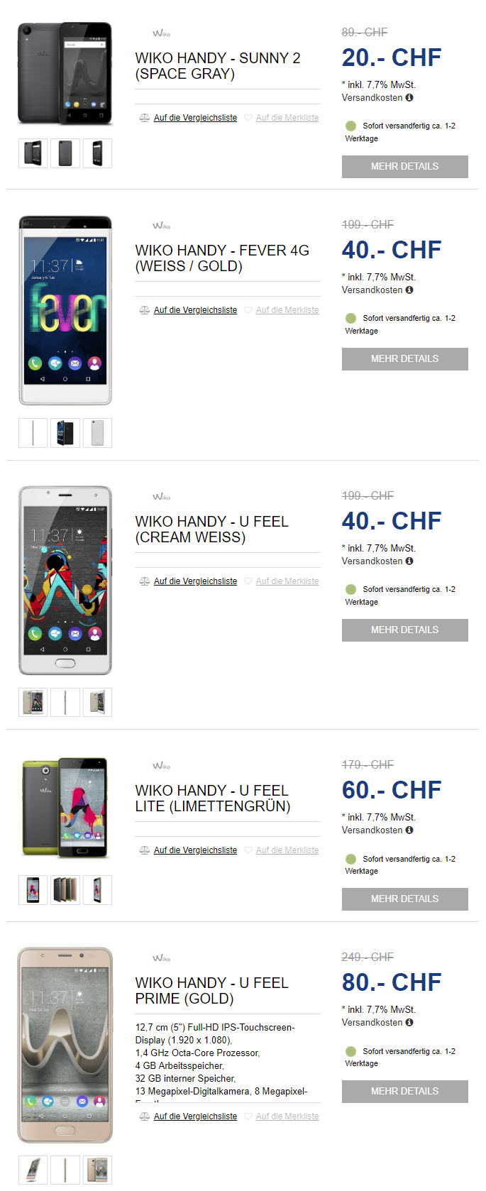 Bei Euronics gibt es momentan diverse WIKO-Smartphone zu absoluten Ausverkaufspreise (ab CHF 20.-).