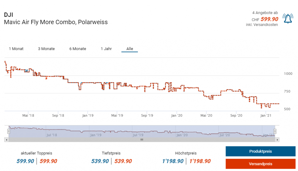 Bei Interdiscount gibts derzeit die Drohne DJI Mavic Air im Set mit dem Fly More und einer Samsung EVO+ 64GB microSD-Karte für knapp 510 Franken. Mit dem bekannten 15 Franken Bon drückt ihr den Preis auf unter 500 Franken. Bei microspot gibts derzeit die gleiche Kombo für etwa 610 Franken.