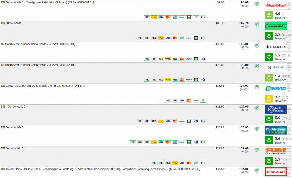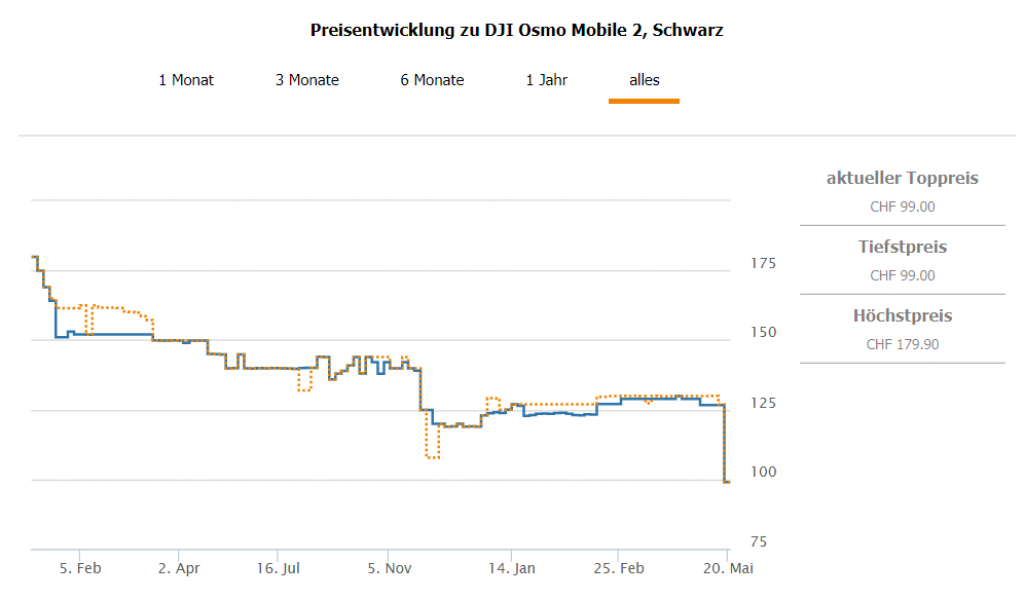 Nicht Teil der aktuellen Kampagne und trotzdem ein Bestpreis. Bei MediaMarkt erhält man den Smartphone-Stabilisator DJI Osmo Mobile 2 für CHF 99.- Vormaliger Bestpreis: CHF 107.75, zweitbester Preis im Moment: CHF 109.70
