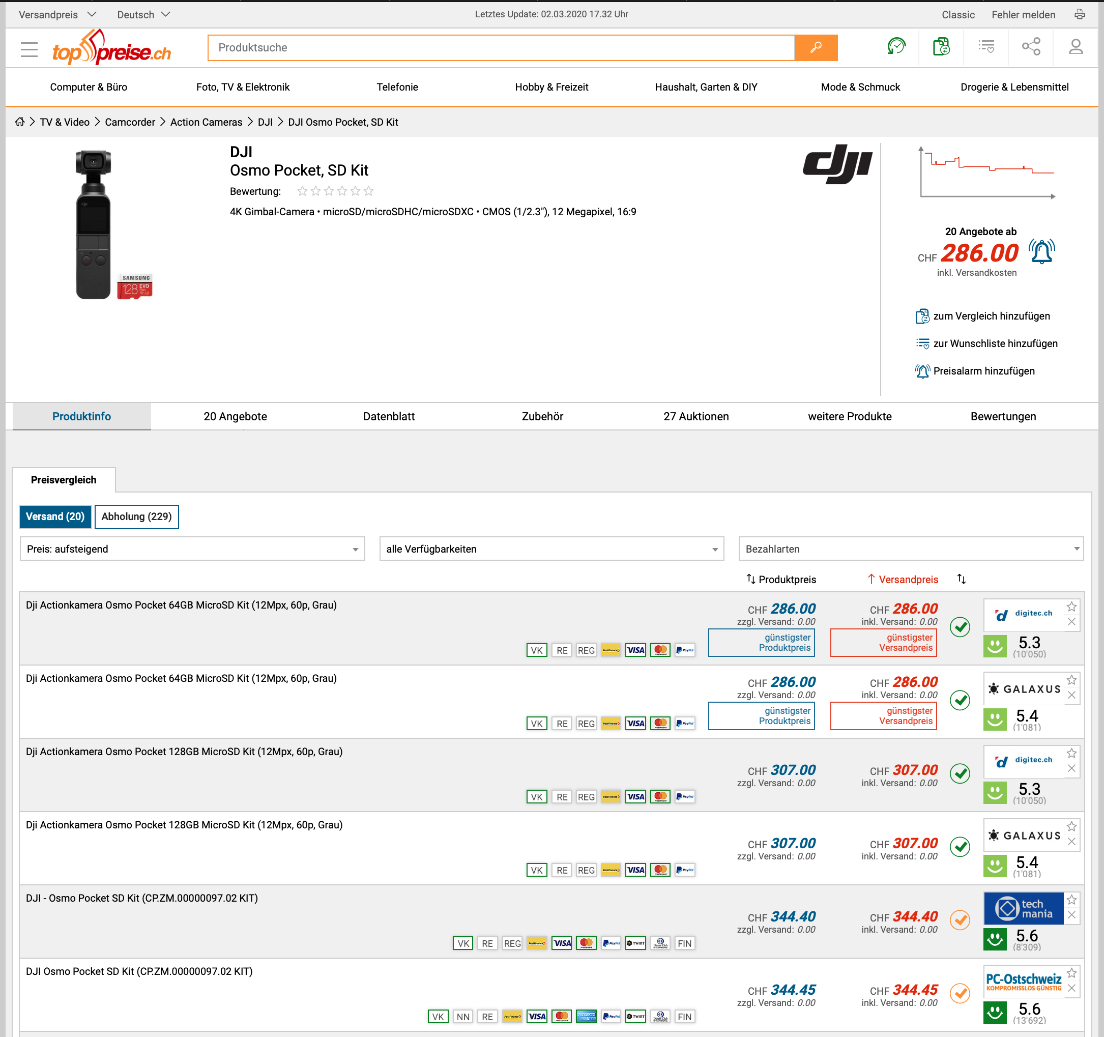 Gab es am 26. Dezember bei daydeal. Trotzdem schön das es wieder zu diesem Preis erhältlich ist. Bin noch auf der suche nach der DJI Osmo Action. Falls jemand einen Geheimen Tipp hat.