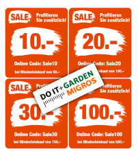 *DO IT + Garden*: verschiedene Gutscheine kumulierbar (bis zu CHF 160.- Rabatt bei einem Einkauf von 500.-)